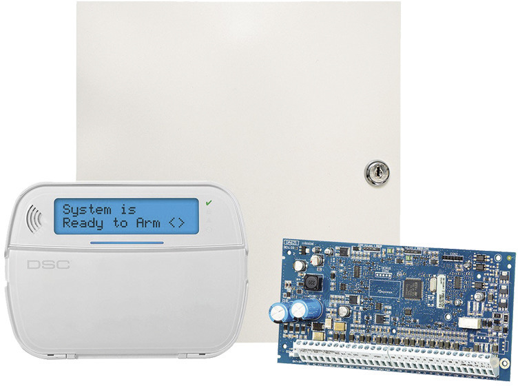 Trådbunden knappsats HS2LCDRF med textdisplay och inbyggd 2-vägs PowerG radiotransceiver ingår. Välj till detektorer, fjärrkontroller och andra tillbehör, trådbundna och/eller trådlösa efter vad som passar till varje enskild installation. Larmpaketet har i grundutförande 9 trådbundna sektioner (8 på huvudkort, 1 på knappsats) som kan kombineras med trådlösa enheter så länge det totala antalet inte är mer än 64.