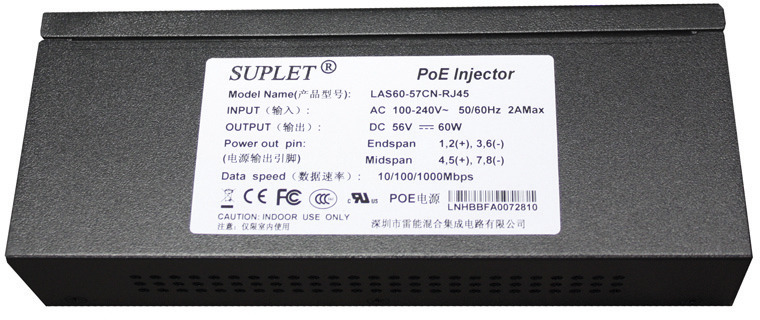 1-ports PoE injektor 60 W. Levereras med nätkabel
