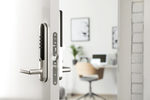 Yale Doorman L3 är ett kodlås med borstad stål som ytbehandling och ellås med internetuppkoppling.