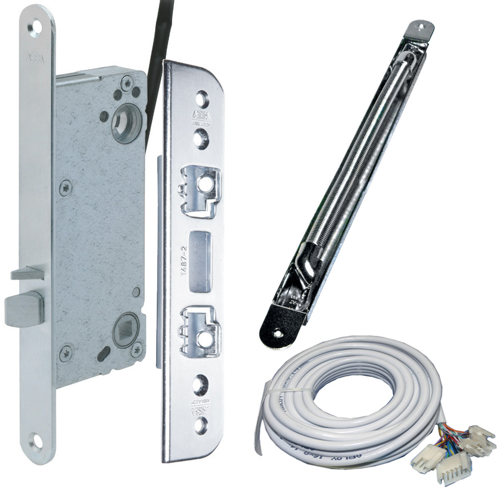 Komplett sats innehåller: lås, anslutningskabel(10016946), slutbleck 1487-2 och kabelöverföring EA281